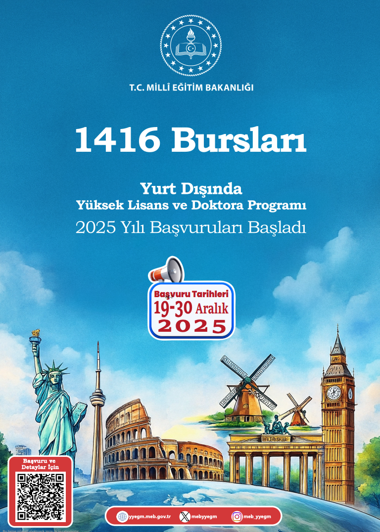 Program kapsamında 2025 yılı "1416 Bursları Başvuru ve Tercih Kılavuzu" MİLLÎ EĞİTİM BAKANLIĞI